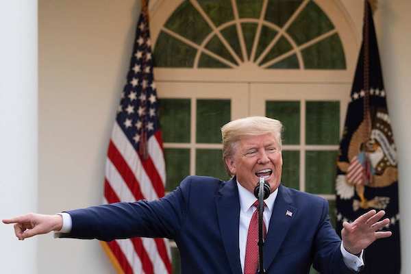 At his Sunday rally/press conference, Trump noted suspiciously that hospitals are now asking for many more masks than they used to before the coronavirus appeared. “How do you go from 10,000 to 20,000 masks [prior to the pandemic] — to 300,000…” he said, “Something’s going on. And you ought to look into it as reporters. Where are the masks going? Are they going out the back door? … And we have that happening in numerous places.”
