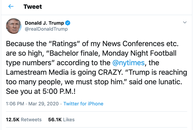 It’s possible that on Sunday he reached that bottom when he suggested that hospitals have been hoarding ventilators and that something more nefarious* may be afoot when it comes to their mask supplies.