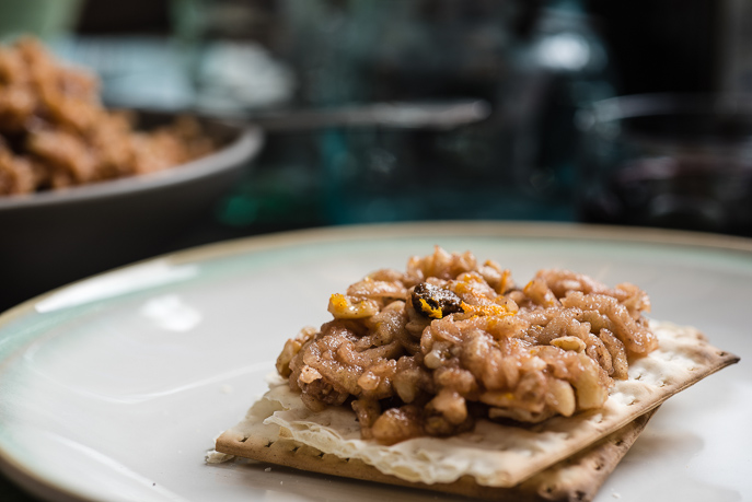 “Matzah” spread with apple and nut mush. Not crème brûlée or Key Lime pie,