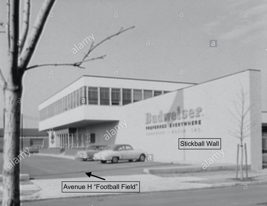 In my Midwood neighborhood we played touch football in the parking lot of a nearby Budweiser warehouse using the parking lines as yard markers – advancing two lines was the equivalent of 10 yards and a first down. We used the Budweiser wall for our stickball games.