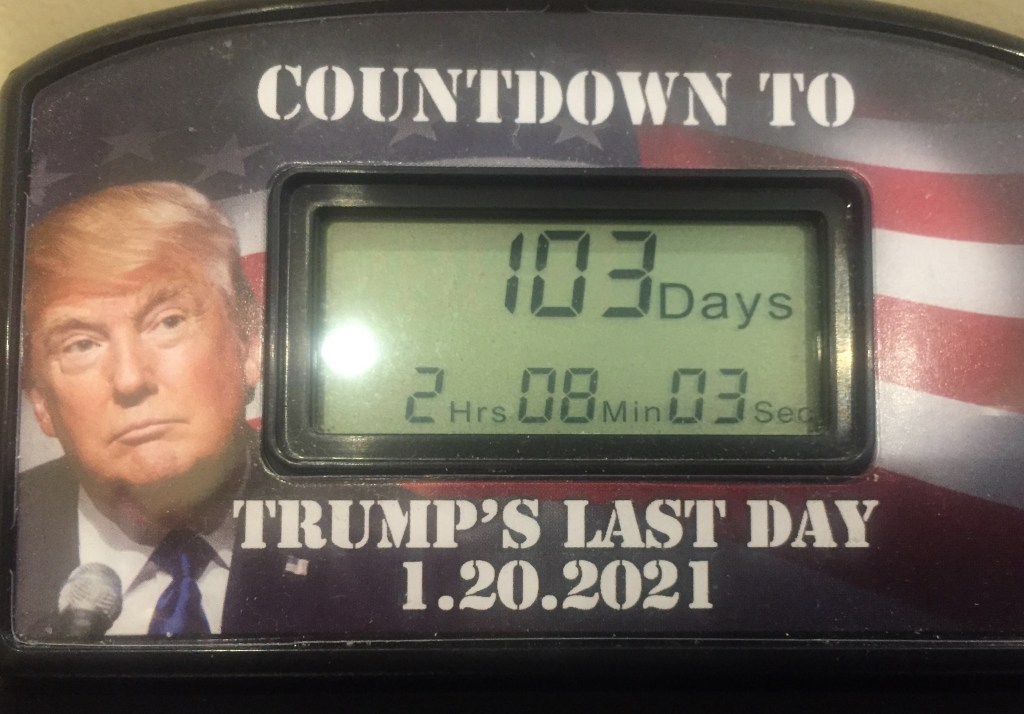 Which one will it be? According my Countdown To Trump’s Last Day clock, in about 103 days, 2 hours, 8 minutes and 3 seconds we’ll have the answer. Can’t wait. The suspense is killing me!