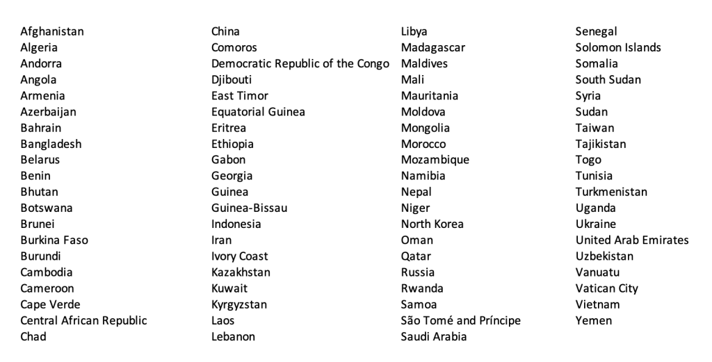 Countries without an extradition treaty with the U.S.