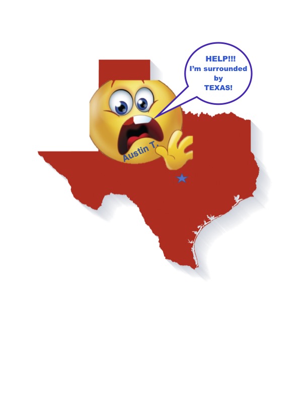 rawgod, as ever your comments are on the mark. I, like you, know Texans who don’t want this kind of bullshit. That’s why the image I used shows Austin, arguably the sanest area in the state, shouting out, “Help, I’m surrounded by Texas.”
