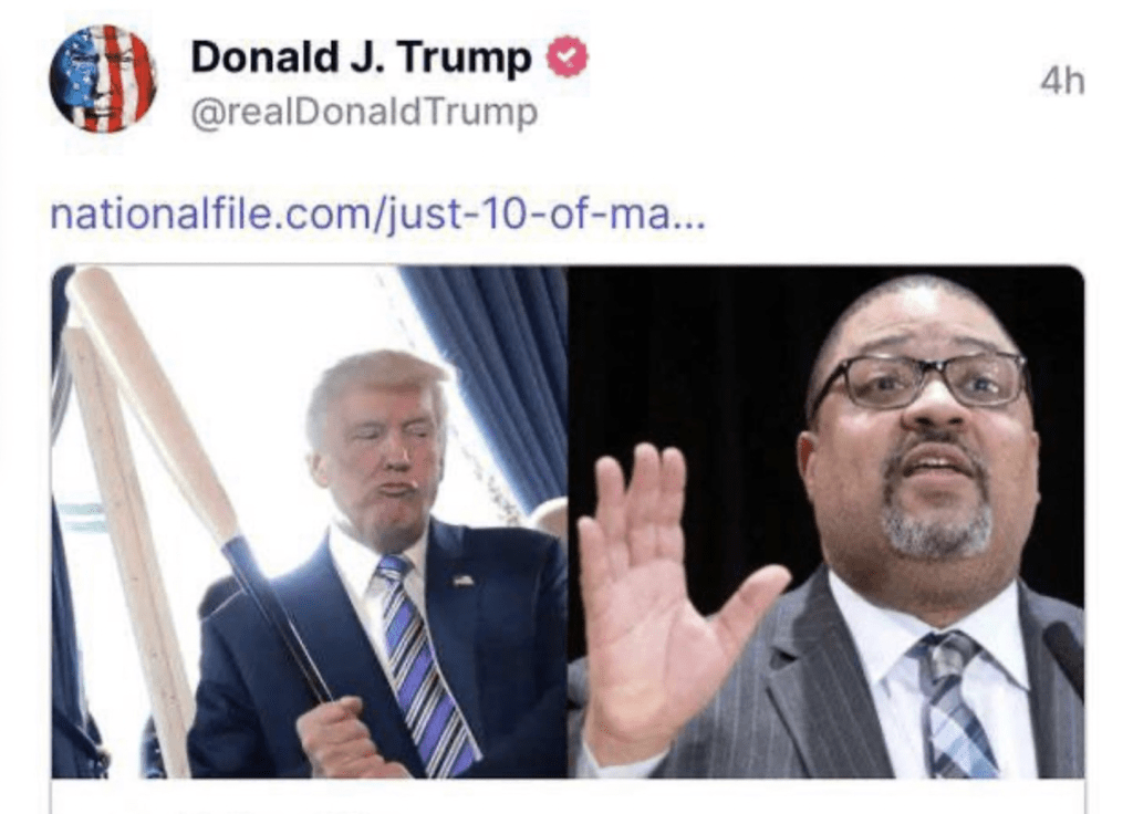 Trump Posts Photo Of Him Holding A Baseball Bat Next To Pic Of Bragg