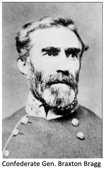 While I’ll leave it to you to delve chapter and verse into Bragg’s overall generalship, suffice it to say that he is considered by historians to be one of the worst generals in the Confederate army. Two examples of his ineptness: