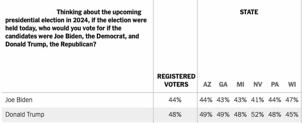 I’ll leave it to you to review, analyze and opine on some of the other findings of this Times/Siena poll: https://www.nytimes.com/interactive/2023/11/06/us/elections/times-siena-battlegrounds-registered-voters.html