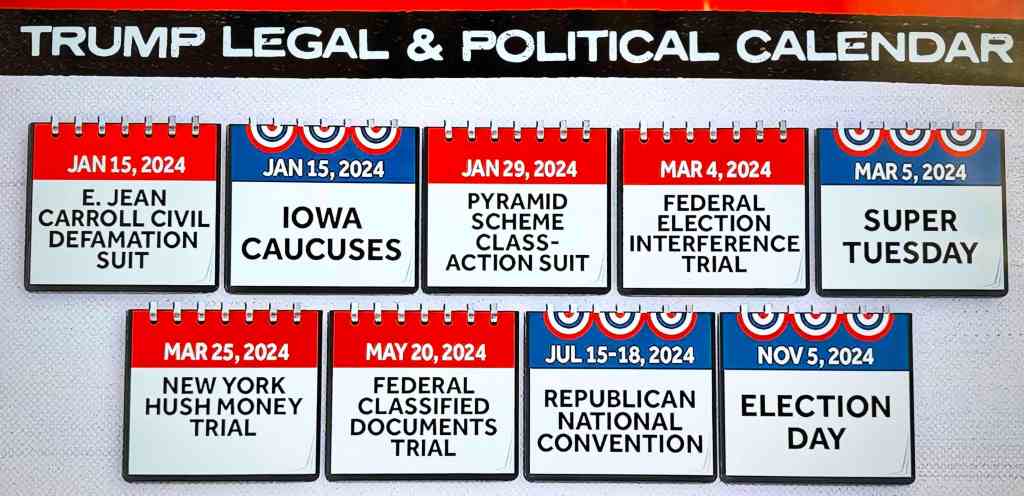 Adhering to the adage, “a picture is worth a thousand words,” consider Trump’s upcoming calendar which had more legal appointments than political ones: