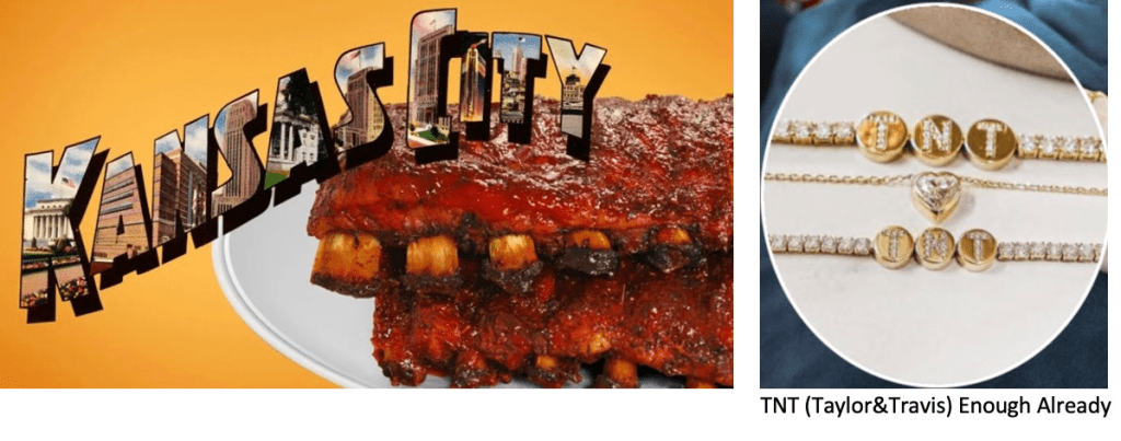 Hmm, Chiefs, red, arrowhead logo, tomahawk chants…I’m sensing a little political incorrectness in KC, countered with Kansas City BBQ and Taylor Swift(!) bracelets.