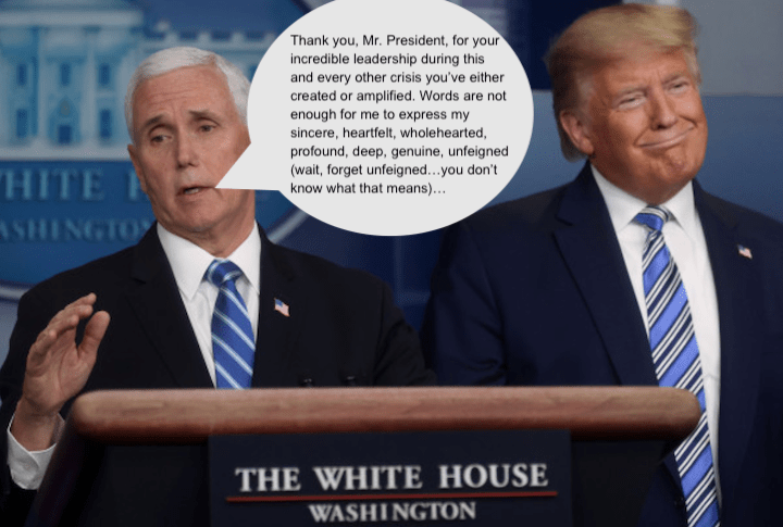 A friend emailed me yesterday saying, “I consider myself to be a somewhat rational person, but listening to Pence’s non-stop babbling and “fearless leader” bullshit on Meet the Press this morning literally brought me tears.